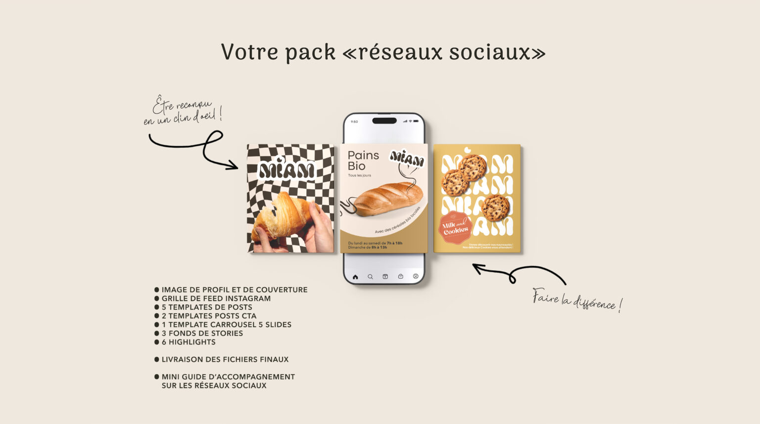Des modèles de posts et de stories sur mesure sont conçus pour que vos profils réseaux sociaux deviennent harmonieux, attractifs et professionnels.